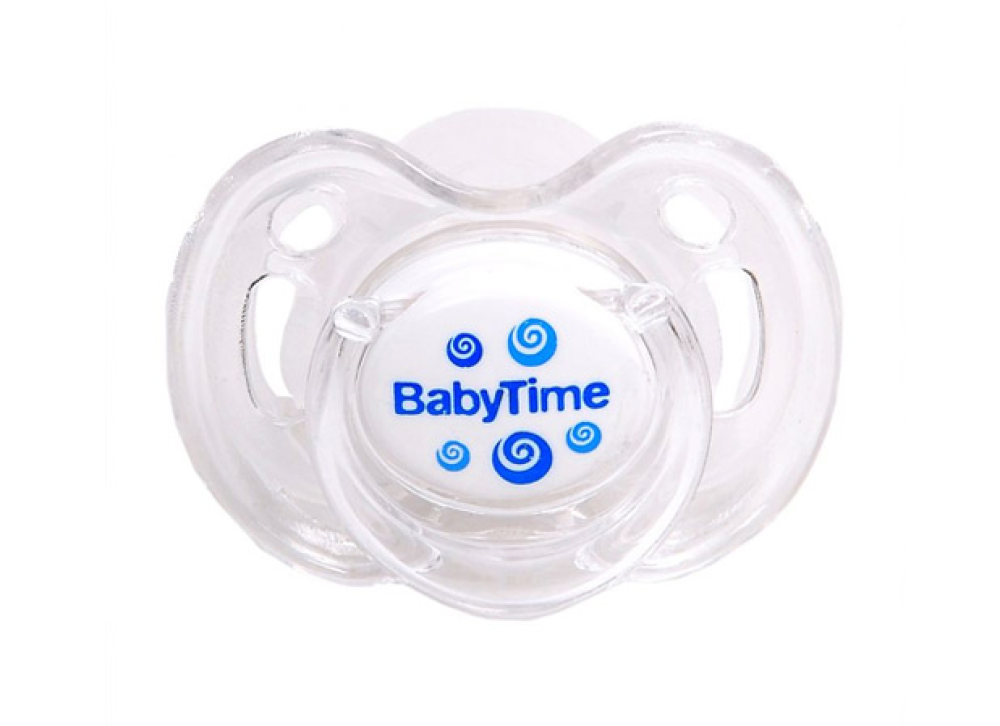 لهاية مع غطاء للأطفال من ماركة BabyTime، مصنوعة من السيليكون توفر فتحات تهوية تسمح بتدفق الهواء حول بشرة الطفل مناسبة للأطفال من عمر 18 شهر فما فوق.