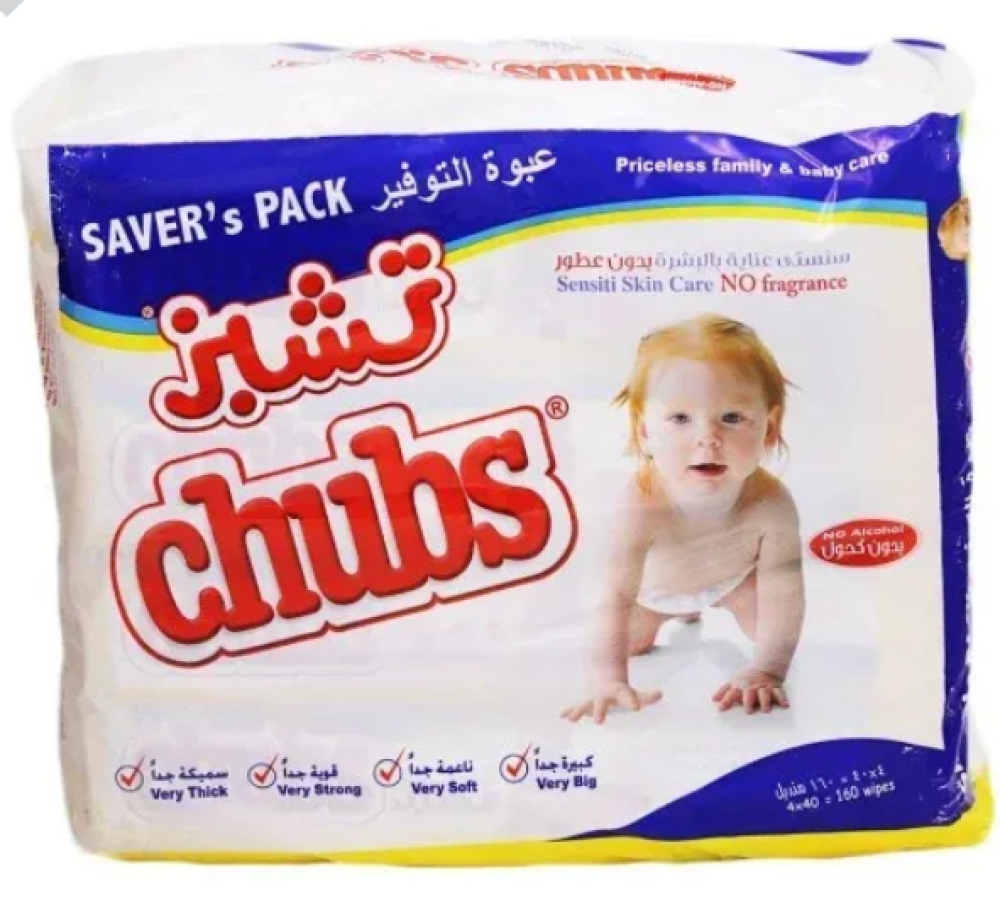 تأتي تشبز مناديل أطفال في كيسٍ يحتوي على 40 قطعة.