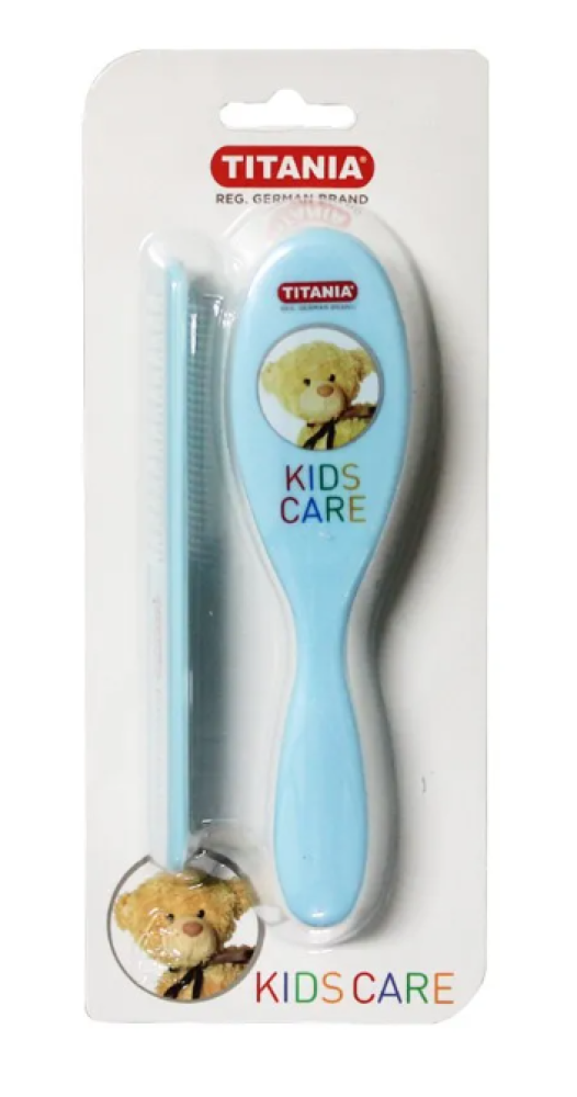 طقم فرشاة ومشط من تيتانيا مصمم خصيصًا للعناية بشعر الأطفال الرقيق والحساس. يتميز بتصميم آمن ومريح لسهولة التصفيف، مع شعيرات ناعمة على الفرشاة وأسنان المشط المستديرة لضمان عدم التسبب في أي تهيج لفروة الرأس.