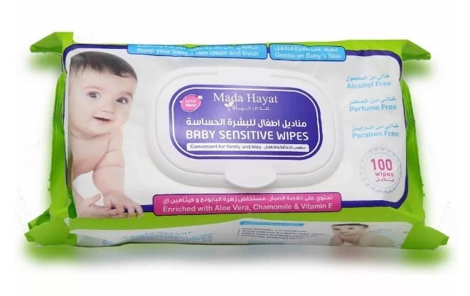 - مناديل اطفال مبلله ، تعتبر هذه المناديل من أفضل الأنواع وهذا لأنها مصنوعة من مواد لطيفة على بشرة الطفل ، بالتالي فإنها لا تتسبب له في أي أضرار.