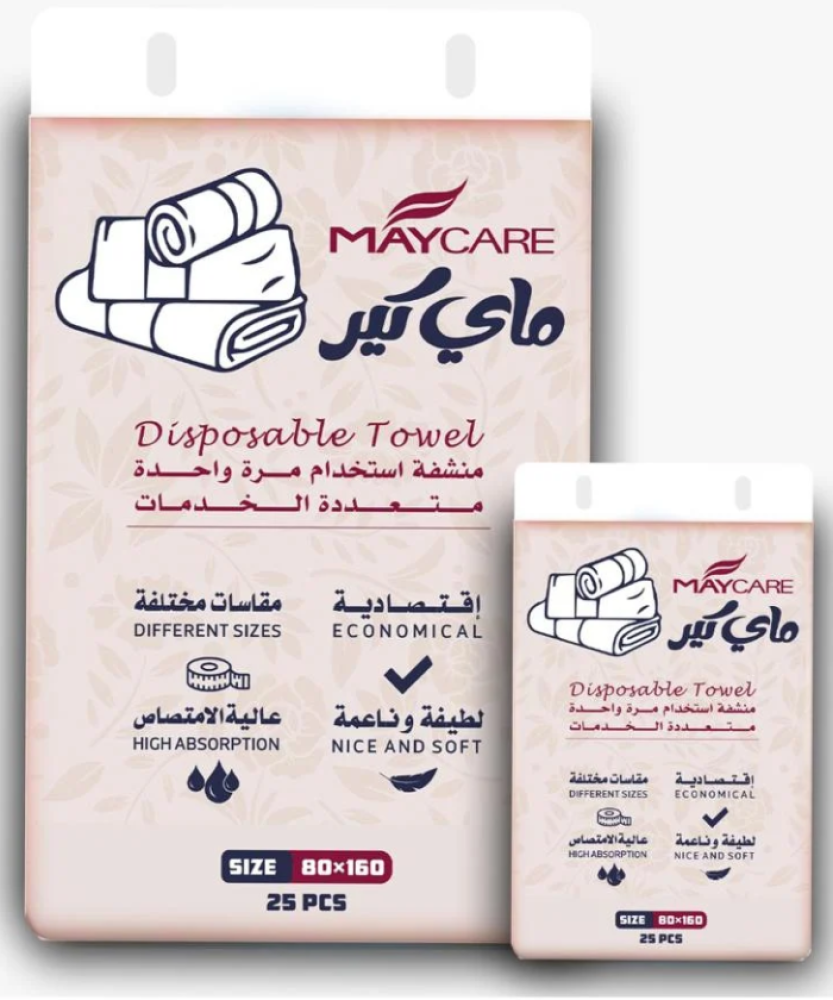مناشف صحية للاستخدام مرة واحدة من 25 قطعة ابيض مقاس 160X80 سم
